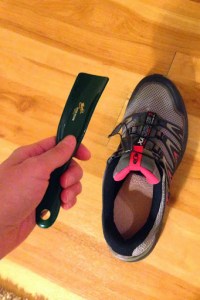 From here on I will now be referring to a shoehorn as a shoespoon, because (a) it’s a better description of what the tool does (acts like a spoon!) and (b) it’s more fun (and I’m all about fun)! Below are instructions for how to use the shoespoon to help slide your IDEO into your shoe. Note: You don’t have to use a shoespoon every single time you put your shoes on. I can’t honestly say that I always use it, but I have started to with my new shoes and it’s allowed them to keep their shape and not stretch out.